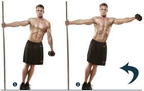 Dumbbell Side Lateral Raise & Dumbbell Front Lateral Raise – Two exercises that will help develop the anterior and lateral heads of the shoulder. Perform the Dumbbell Side Lateral Raise (an almost identical motion to the previous exercise) and immediately transition to doing the Dumbbell Front Lateral Raise (hammer grip).